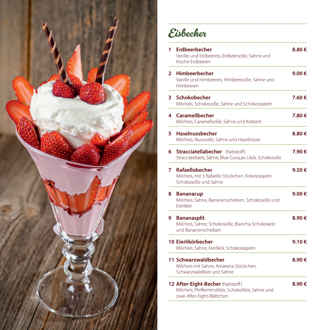 For those seeking dessert, NAPOLI offers a tempting array of ice cream sundaes. Indulge in the Erdbeerbecher with vanilla and strawberry ice cream drizzled with fresh strawberries, or savor the rich Schokobecher layered with chocolate sauce and cream. The Eiskaffee is a refreshing choice, perfect for a warm day.